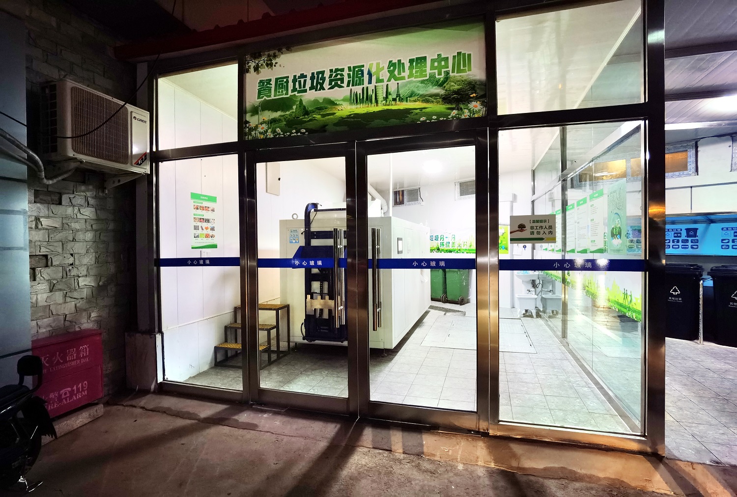 該項目主要采用餐廚垃圾生物處理機(jī),分為預(yù)處理系統(tǒng)、生物處理系統(tǒng)、廢氣處理系統(tǒng)和廢水處理系統(tǒng)四個基本系統(tǒng),并通過“電控系統(tǒng)”實(shí)現(xiàn)自動化控制、數(shù)據(jù)自動傳送存儲和遠(yuǎn)程監(jiān)控。廢氣處理系統(tǒng)主要采用生物濾池式處理和蜂窩活性炭吸附兩種方法。此外配置室內(nèi)空間霧化除臭設(shè)備,吸附空氣中的粉塵粒子和空氣中的臭氣及異味分子,從而達(dá)到除臭降塵的目的。