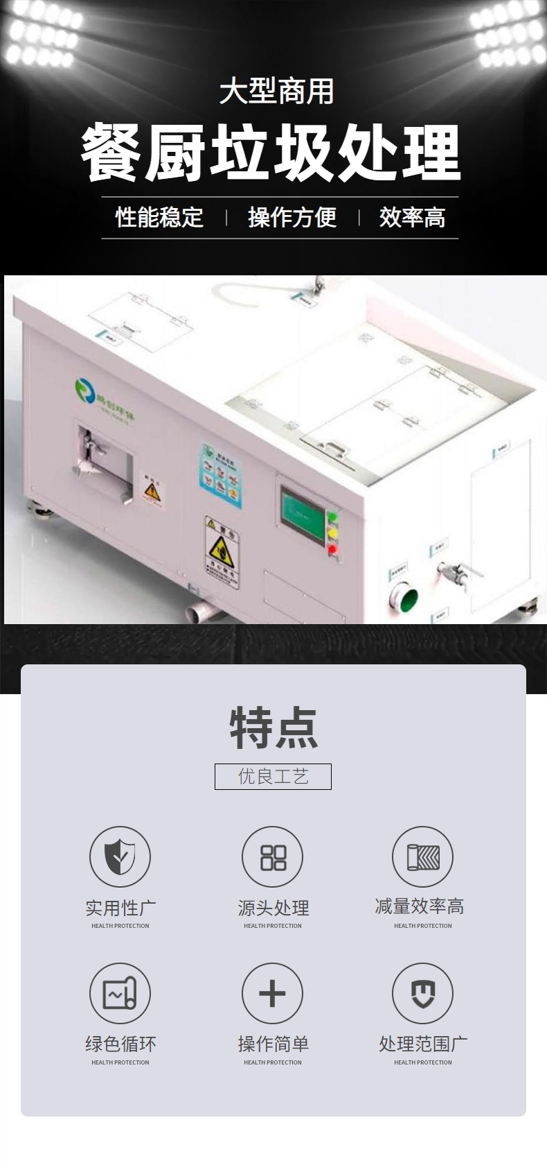 8、節能降耗:配備粉碎、濾水、脫水功能,高溫微生物發酵處理,從而大大降低能耗,比其他品牌同類產品節能50%以上。